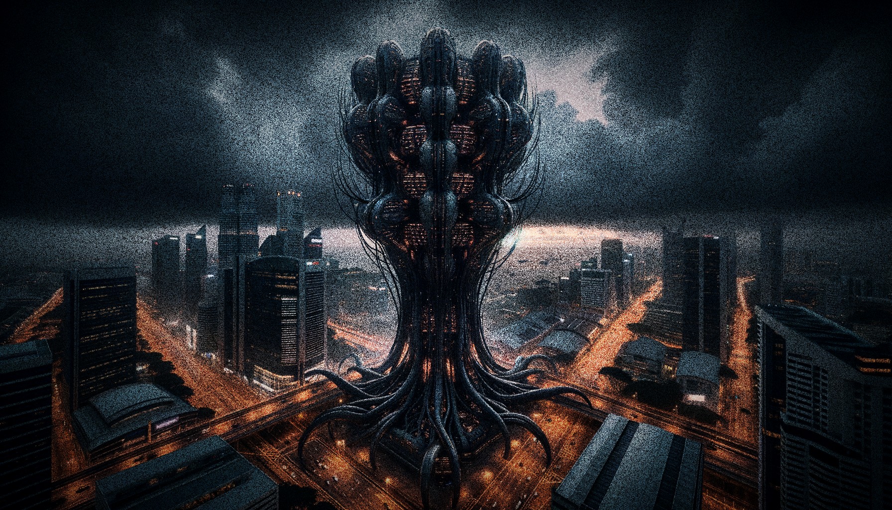 Apex Tower Singapore: Still growing. Now 4.7 km tall. Quarantined. Monitored. Fed controlled carbon to prevent expansion.