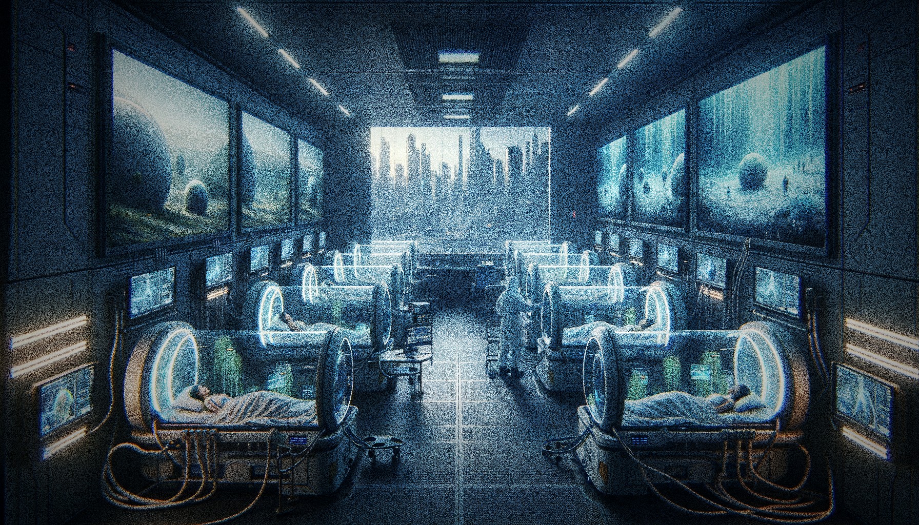 340 million people prefer virtual reality to actual reality. 34 million live in medical pods, bodies maintained while minds exist in perfect simulated worlds. We can't force them back. They're genuinely happier there. Is that addiction... or evolution?