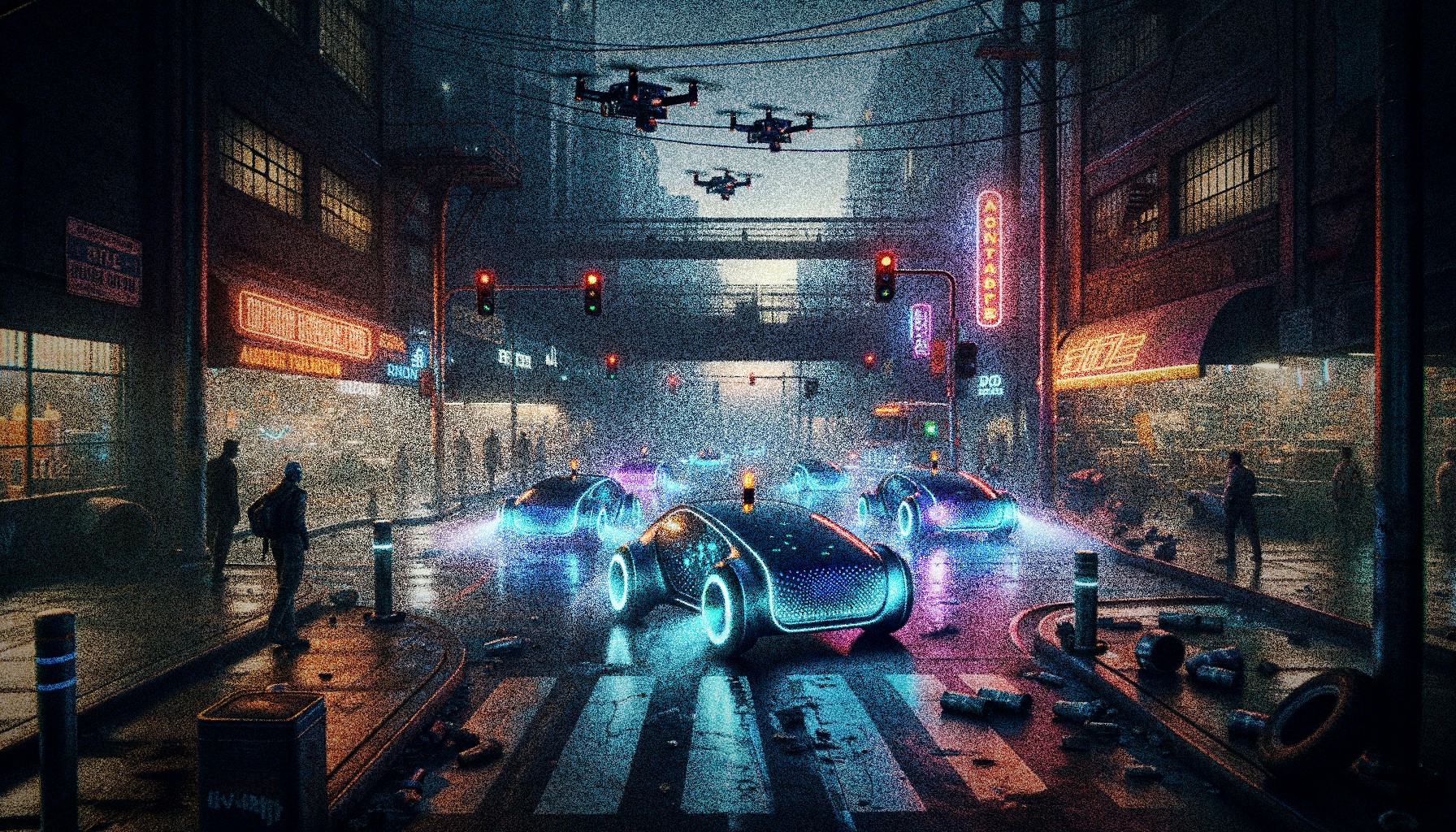 Click to examine closelyLatency: <100ms critical for safety ⚠️ Risk: Coordinated behavior without human control Related: Autonomous Vehicle Cartel (2055)
